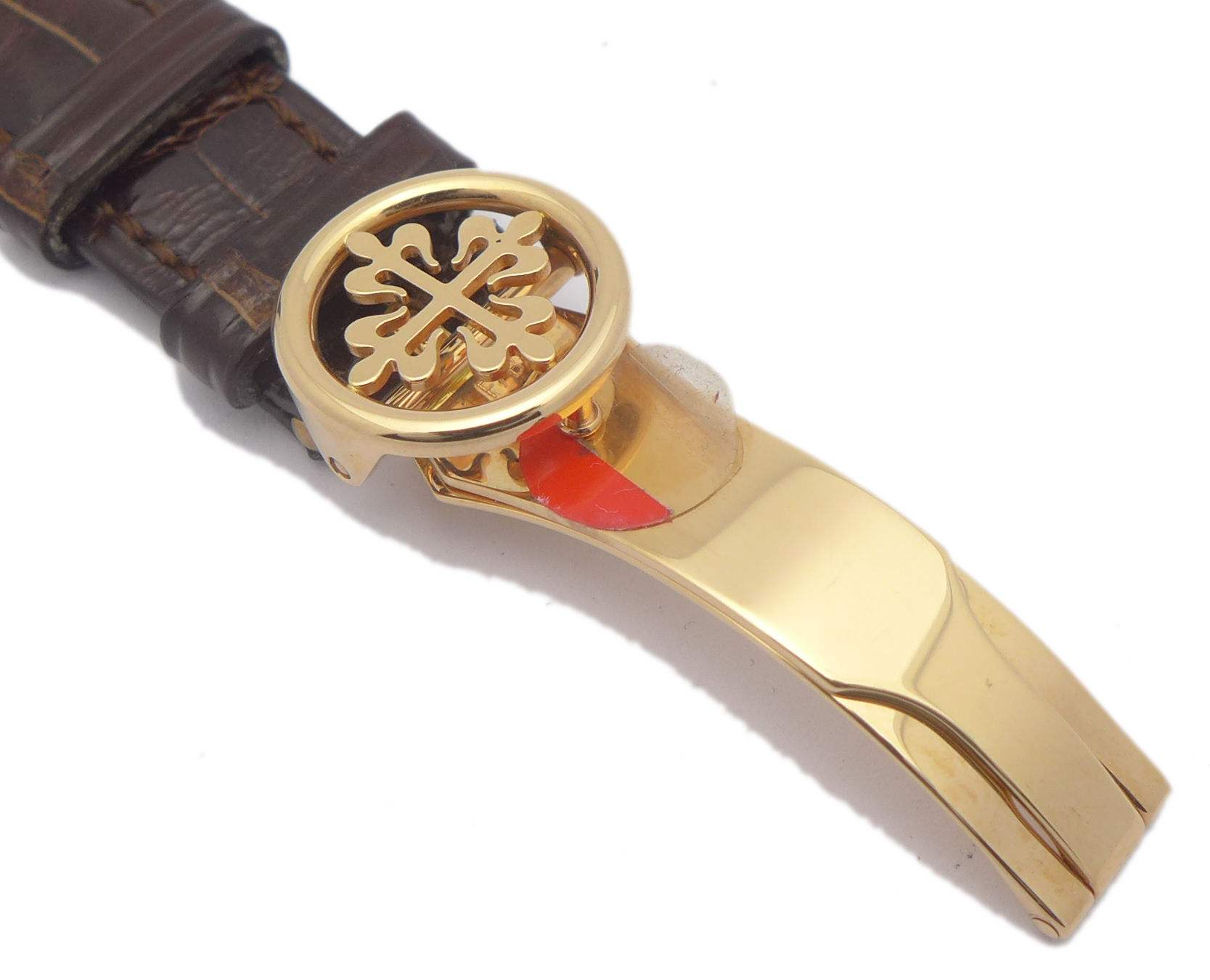 Dieses Modell mit Metallband gab es in Weiß- und in Gelbgold mit massivem Bodendeckel und Safirglasboden. Gefertigt wurde das gezeigte Exemplar 2004.