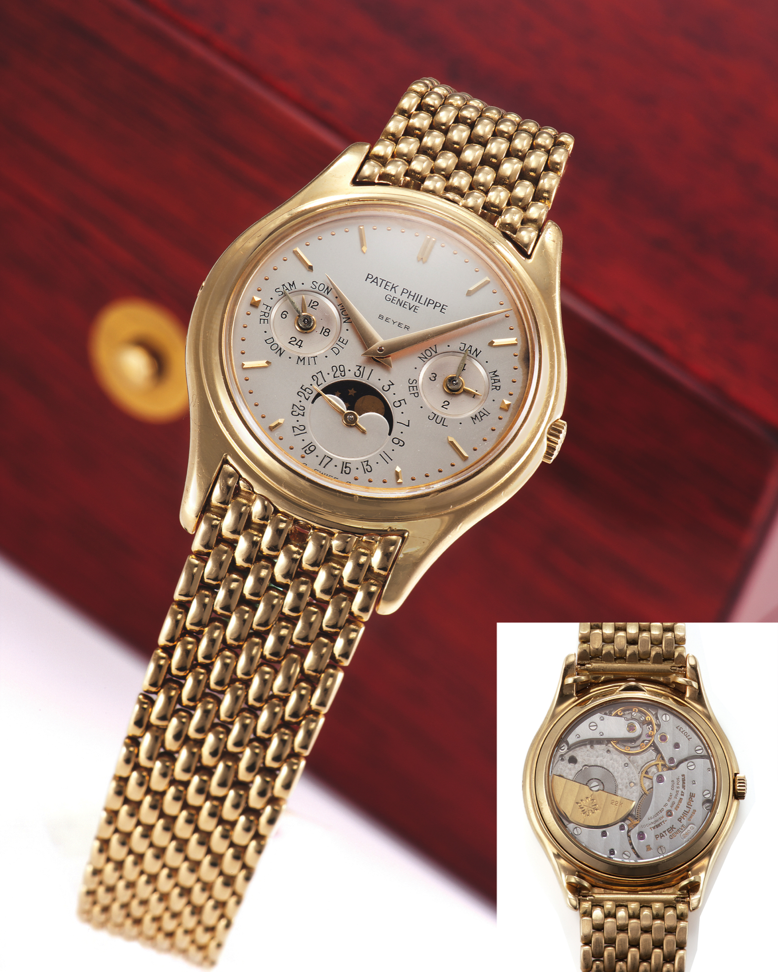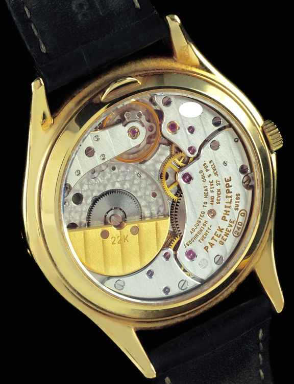 Die eindrucksvolle Geschichte der Ref. 3940 begann mit einem Sondermodell für den Patek Philippe Geschäftspartner Beyer in Zürich zu dessen 225. Jubiläum. Fünfundzwanzig dieser Uhren wurden gebaut. Interessant ist auch, dass Patek Philippe für diese Uhren auch fortlaufende Werknummern des Kaliber 240 Q vergeben hat, die No.1 der Beyer Sondermodelle trägt die Werknummer 770001, die No. 25 trägt die Werknummer 770025. So etwas hat Patek Philippe nur sehr selten gemacht.